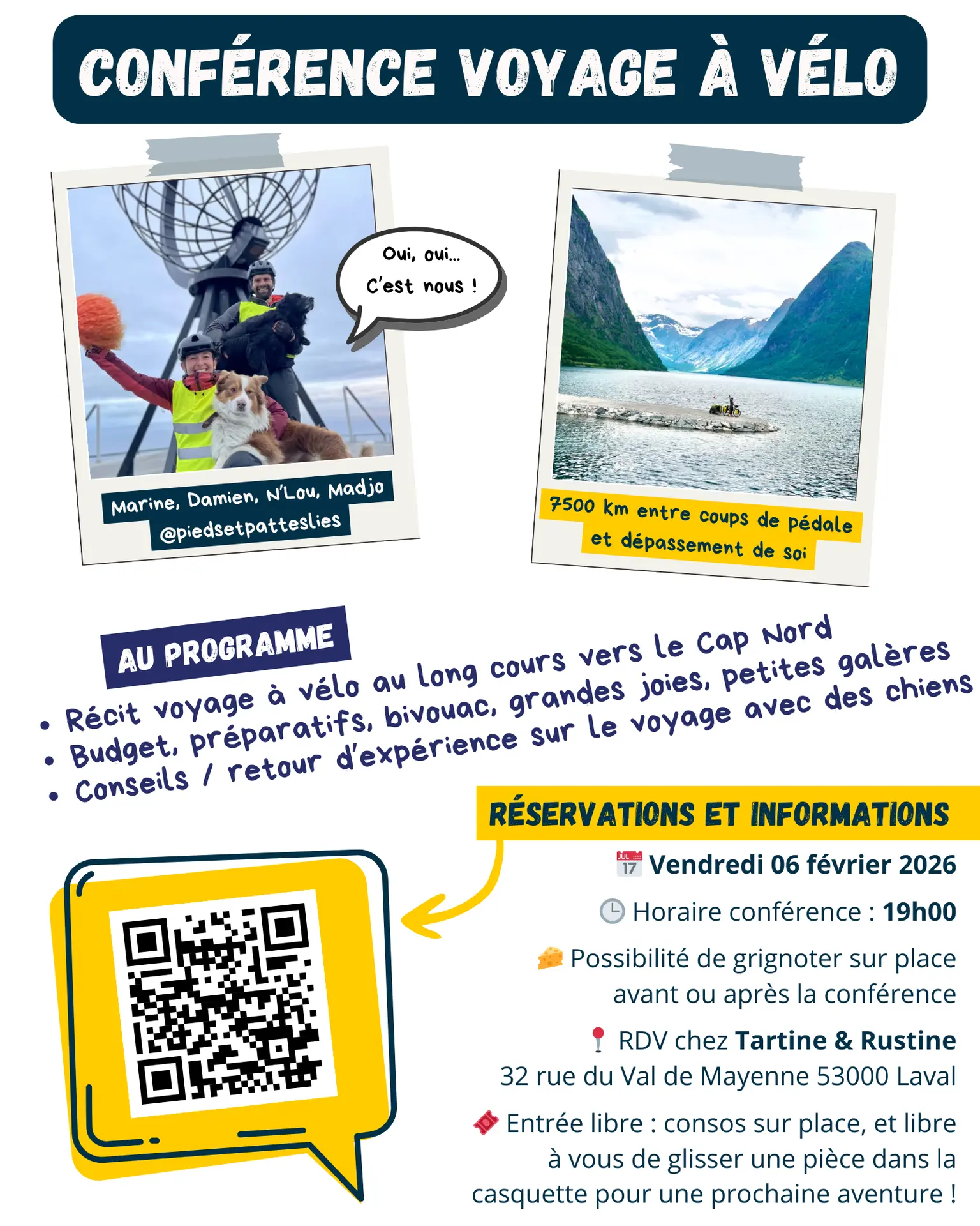 🎬 Conférence – De Laval au Cap Nord à vélo (AVEC nos CHIENS 🐾)